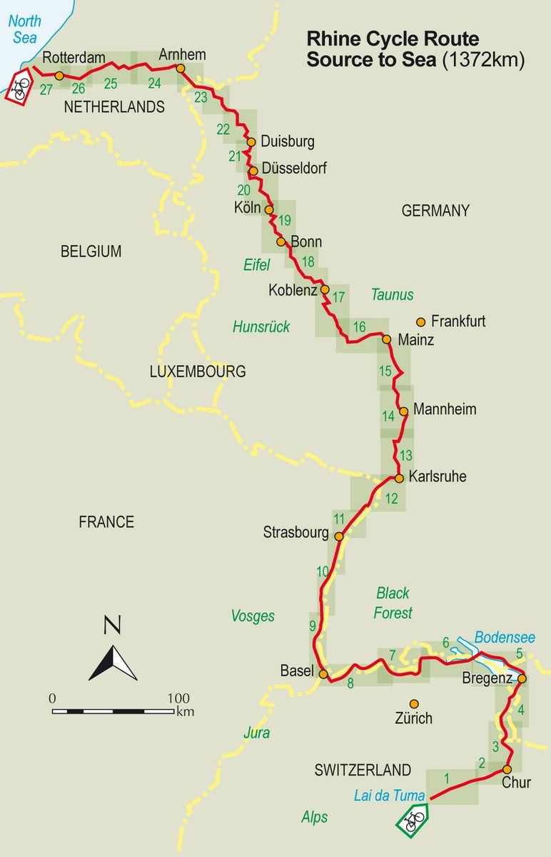 A guidebook for the Rhine Cycle Route with stage-by-stage descriptions, from its source high in the Swiss Alps to its mouth at the Netherlands' North Sea coast. In two weeks and 27 stages, you will cycle through six countries including France and Germany, visiting cities, towns and villages and passing locations of great historical interest.