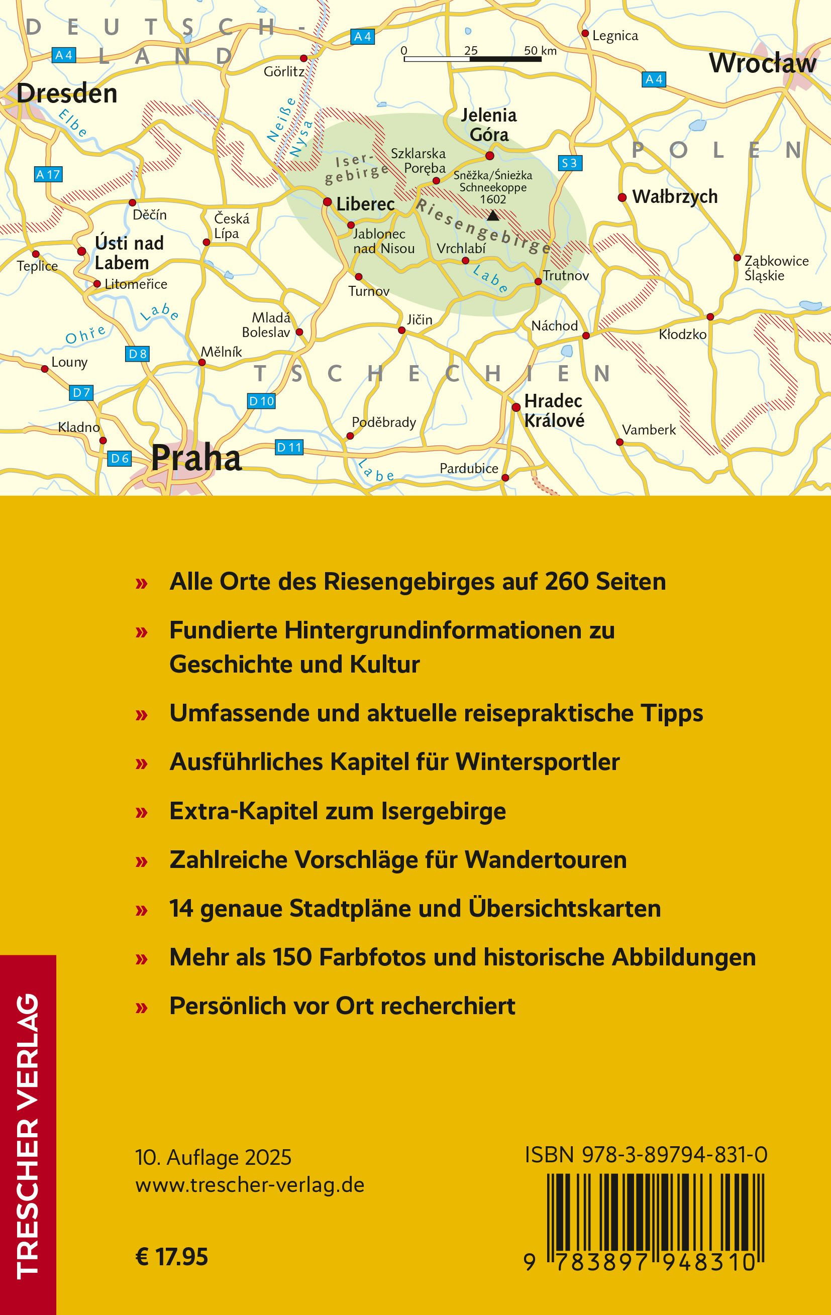 De Trescher reisgids voor het Reuzengebergte beschrijft een van de hoogste Centraal-Europese gebergtes ten noorden van de Alpen met al zijn bezienswaardigheden en geeft talrijke tips voor wandelaars en skiërs. Actuele reistips over natuur, geschiedenis, accommodatie, gastronomie en cultuur helpen bij de reisvoorbereiding.