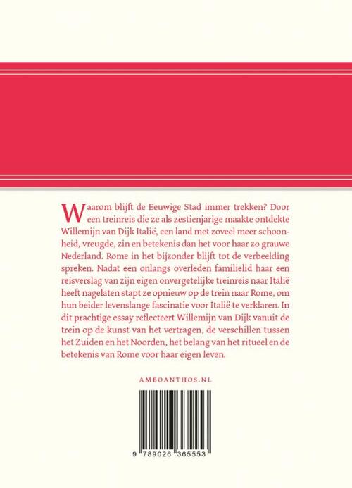 Waarom blijft de Eeuwige Stad immer trekken? Door een treinreis die ze als zestienjarige maakte ontdekte Willemijn van Dijk Italië, een land met zoveel meer schoonheid, vreugde, zin en betekenis dan het voor haar zo grauwe Nederland. Rome in het bijzonder blijft tot de verbeelding spreken. Nadat een onlangs overleden familielid haar een reisverslag van zijn eigen onvergetelijke treinreis naar Italië heeft nagelaten stapt ze opnieuw op de trein naar Rome, om hun beider levenslange fascinatie voor Italië te verklaren.