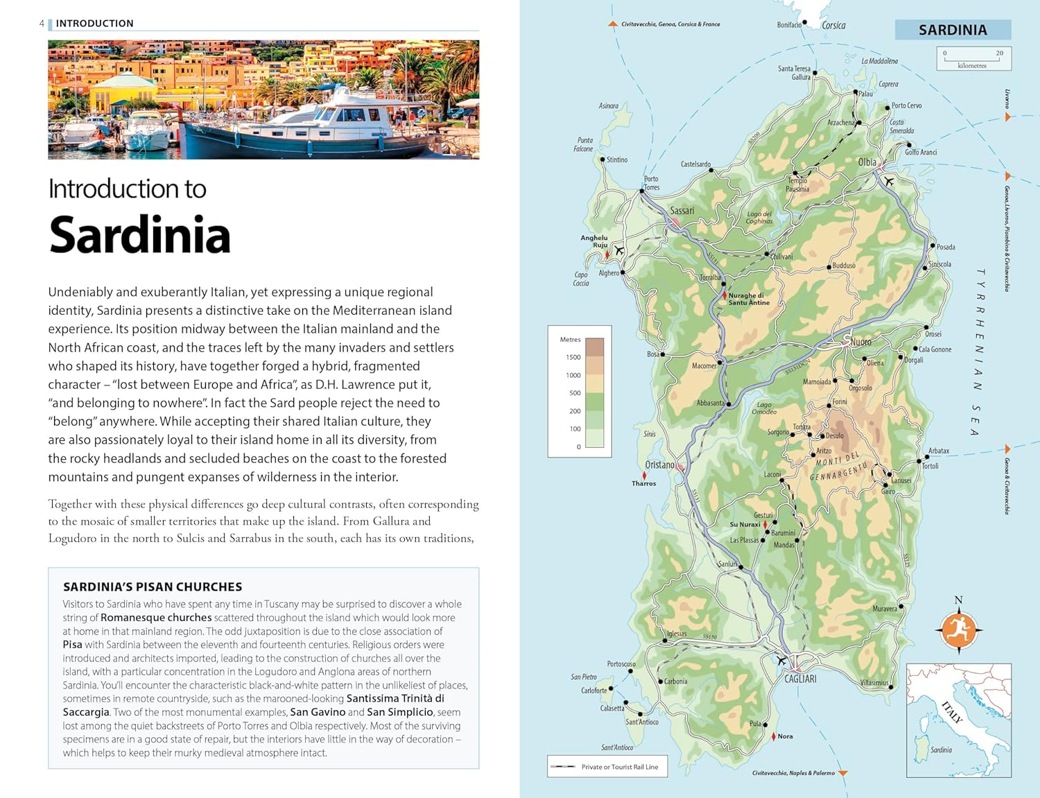 The Rough Guide to Sardinia staat vol met praktisch advies over wat je kunt zien en doen - van galerieën en archeologische vindplaatsen tot bergwandelingen en stranden - evenals beschrijvingen van de beste hotels, bars en restaurants voor elk budget. De flamboyante festivals en rijke geschiedenis van het eiland worden behandeld, evenals minder bekende aspecten zoals het industriële erfgoed, literatuur, handwerk en culinaire tradities. Trekking- en ruiterroutes, watersporten en fietsroutes komen ook aan bod, terwijl de 'Top 5-kaders' de hoogtepunten uitlichten die je niet wilt missen.