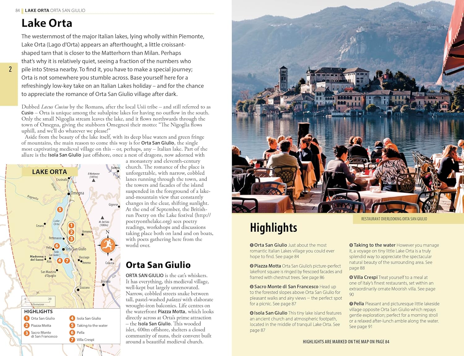Uitgebreide en goed gedocumenteerde reisinformatie over de Italiaanse Meren. Achtergrondhoofdstukken over maatschappij en cultuur, plus zeer veel praktische info omtrent vervoer en verblijf, voor uiteenlopende budgetten. Goede, kritische beschrijvingen van alle bezienswaardigheden en toeristische mogelijkheden. Mooi geïllustreerd en met stadsplattegronden en overzichtskaartjes. Prettige, vlotte schrijfstijl.