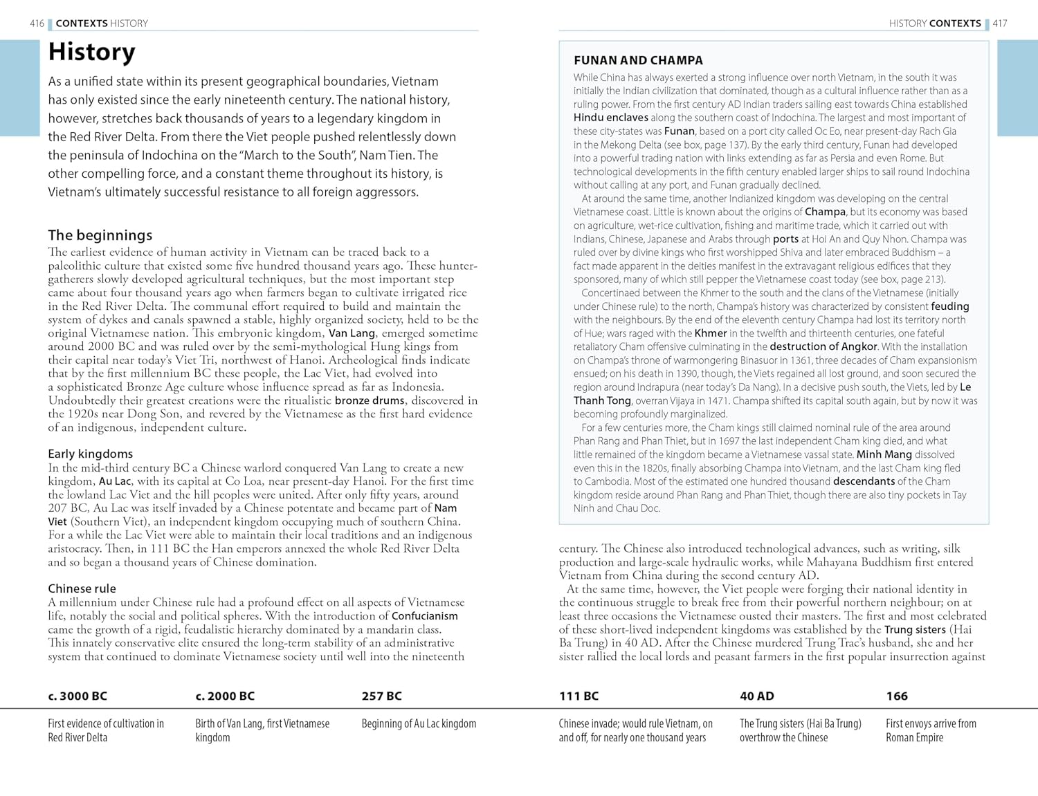 - Background information - a Contexts chapter devoted to history, religion and beliefs, Vietnam's ethnic minorities, environmental issues, music and theatre, books, movies and film, plus a handy language section and glossary.
