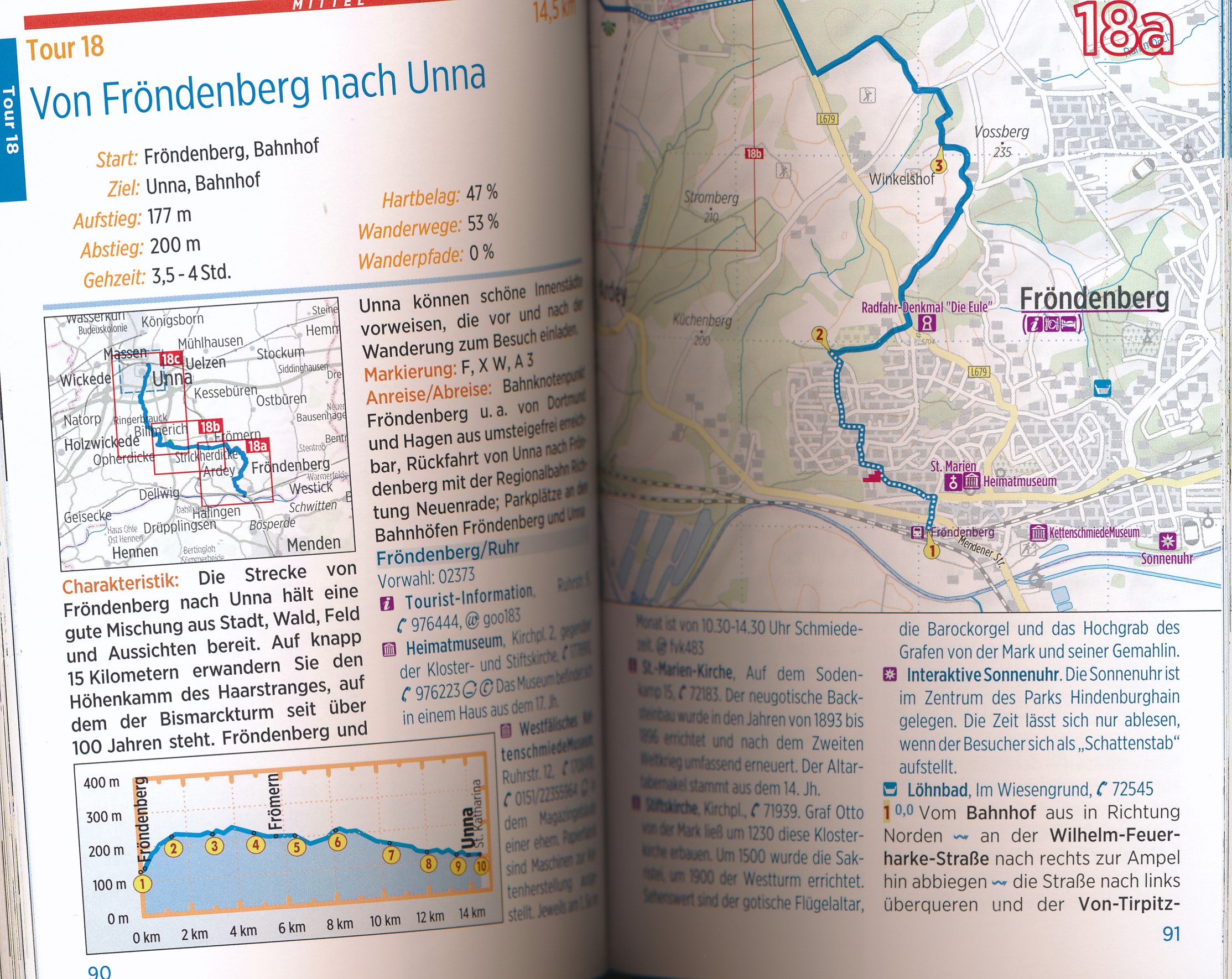Deel uit een serie handige Duitse wandelgidsjes in handzaam formaat. De gidsjes zijn zeer licht in gewicht, desondanks uitstekend bestand tegen weer en wind. Met gedetailleerde kaartjes (met een UTM-grid), duidelijke routebeschrijving, wetenswaardigheden omtrent de plaatsen onderweg, stadsplattegrondjes, hoogteprofiel bij iedere etappe en uitgebreide overnachtingsinfo. | Das Ruhrgebiet genau zu definieren ist eigentlich unmöglich. Fragen Sie Bewohner, so ist das ungefähr alles was rechts und links der A 40 zwischen Duisburg im Westen und Dortmund im Osten liegt. Die Bezeichnung „Ruhrgebiet“ stammt aus den 1930er Jahren und wurde vor allem durch den damaligen Siedlungsverband Ruhrkohlenbezirk, dem späteren Kommunalverband Ruhrgebiet und heutigen Regionalverband Ruhrgebiet geprägt. Insgesamt gehören 11 kreisfreie Städte sowie vier Kreise zum Verbandsgebiet von 4.435 km².Was das Ruhrgebiet verbindet, ist vor allem die Geschichte seiner Industrialisierung. Vor deren Beginn war das Ruhrgebiet überwiegend landwirtschaftlich geprägt. Kleine Dörfer und wenige größere Städte, die ihren Ursprung vor allem im Mittelalter hatten, besiedelten das Land. Die schon seit dem 13. Jahrhundert abgebaute und verarbeitete Kohle sowie die Eisenhüttenwerke waren Keimzellen dessen, was Anfang des 19. Jahrhunderts großflächig das Ruhrgebiet verändern sollte. Der Kohlenbergbau vollführte eine Nordwanderung, den Flözen nach, die hier in immer mächtigeren, jedoch auch tiefer liegenden Schichten auftraten. Die heutzutage noch aktiven Schächte liegen fast ausnahmslos im Norden des Ruhrgebiets. Von den einst schätzungsweise 3.200 Zechen fördern heute nur noch vier Bergwerke. Dieses Buch beschreibt insgesamt 440 Kilometer. Diese teilen sich auf 50 Routen auf, die kreuz und quer durch das Ruhrgebiet führen. Die Touren decken eine große Bandbreite von kurzen Spaziergängen bis hin zu Ganztagestouren ab. Die zu bewältigenden Höhenmeter im Anstieg liegen zwischen 25 und 335, anstrengende Anstiege gibt es nur bei manchen Touren im südlichen Ruhrgebiet. Die angegebenen Gehzeiten verstehen sich als Richtwerte und bewegen sich zwischen 1 und 5 Stunden, Pausen und Zeiten für Besichtigungen sind dabei nicht eingerechnet. Ein Großteil der Routen verläuft auf gut ausgebauten Wanderwegen abseits vom großen Straßenlärm. Nur wenige Streckenabschnitte verlaufen entlang von viel befahrenen Straßen. Einige der Strecken enthalten auch anspruchsvollere Wanderpfade, die steil bergab oder bergauf führen. Jedoch sind dies eher Ausnahmen, die in abwechslungsreiche Touren eingebunden sind.