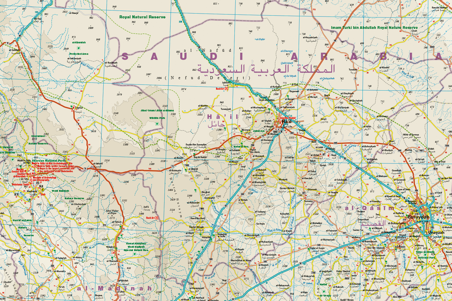 Saudi-Arabia landkaart, wegenkaart 1:1.800.000