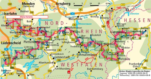 Kaarten en gidsen > Wandelen > Wandeltochten > Meerdaagse wandelroutes > Europa > Duitsland > West-Duitsland > Nordrhein-Westfalen > Sauerland > Sauerland-Höhenflug | Wandelkaart 1:25.000
