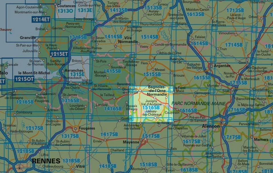 Tip: klik op de serienaam, dan verschijnen alle IGN 25 kaarten van deze regio, op volgorde.