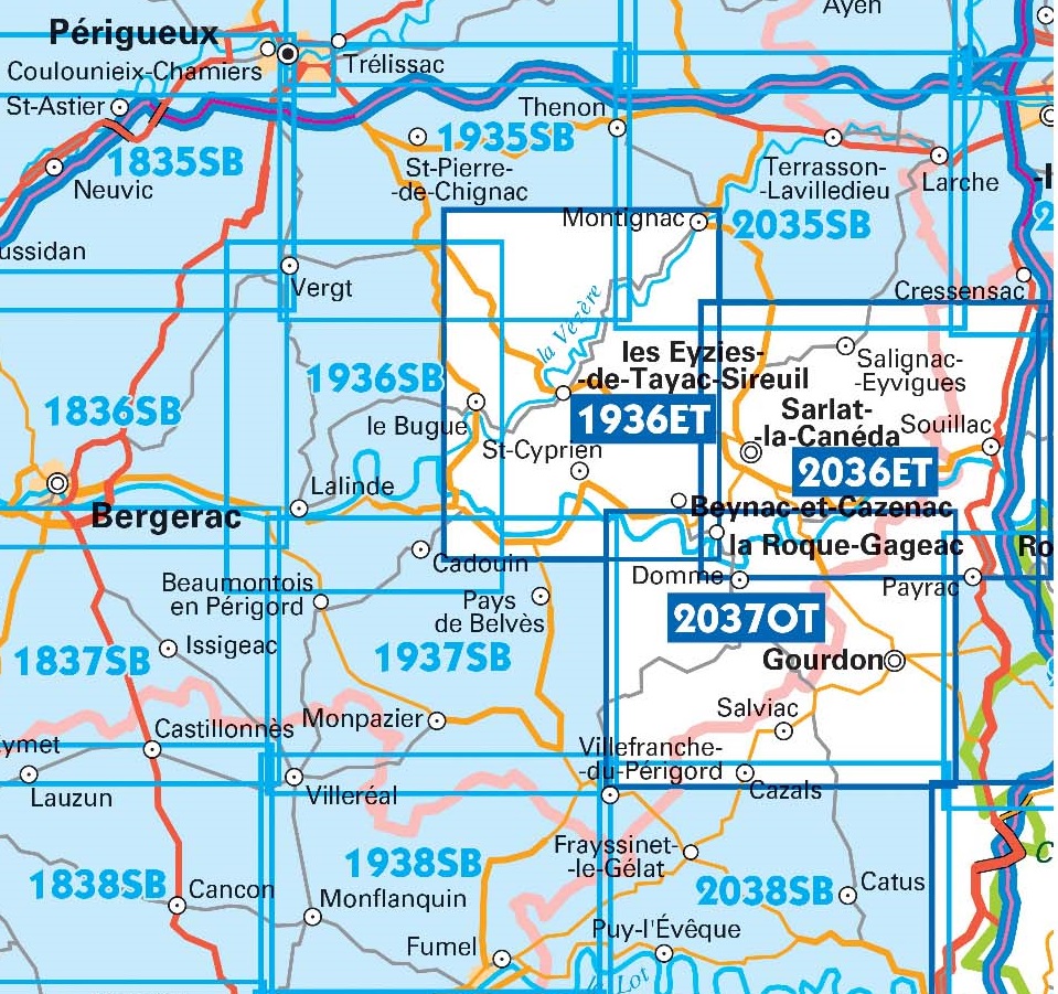 Tip: klik op de serienaam, dan verschijnen alle IGN 25 kaarten van deze regio, op volgorde.