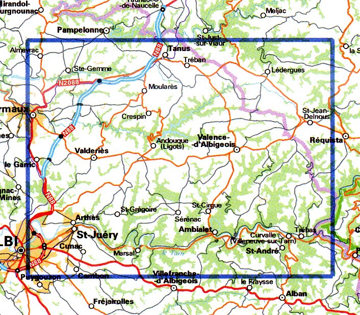 Tip: klik op de serienaam, dan verschijnen alle IGN 25 kaarten van deze regio, op volgorde.