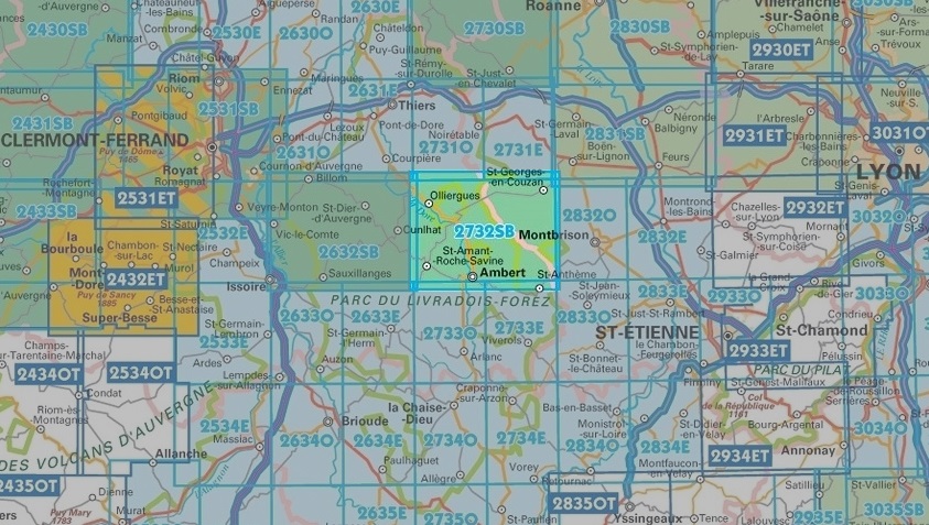 Tip: klik op de serienaam, dan verschijnen alle IGN 25 kaarten van deze regio, op volgorde.