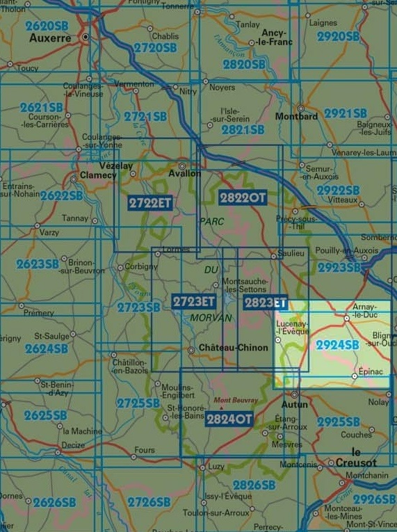 Kaarten en gidsen > Wandelen > Wandelkaarten > Europa > Frankrijk > Noordoost-Frankrijk > Bourgogne > Morvan > SB-2924SB Arnay-le-Duc wandelkaart 1:25.000
