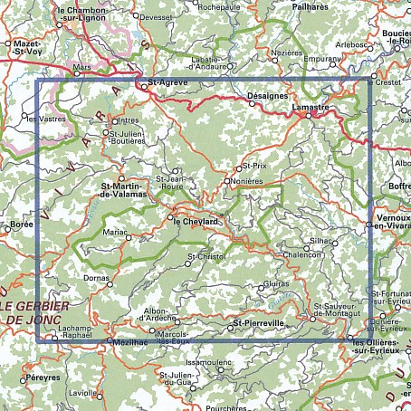 Dit is een deel uit de vernieuwde Série Bleue. Dat zijn zeer gedetailleerde topografische kaarten, met nauwkeurige registratie van onder meer (wandel)paden, hoogtelijnen en vele overige landschapselementen. Prima om mee te wandelen, ieder boerenstalletje staat erop! Wij doen de kaart in een transparant plastic hoesje (ook handig voor in de rugzak of tijdens het wandelen) en we stoppen er een door ons samengestelde Frans-Nederlandse wandelwoordenlijst (ca. 500 woorden) in.