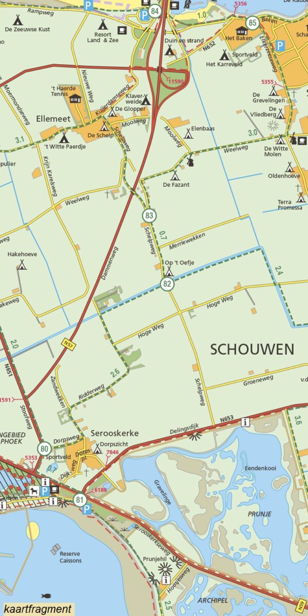 Kaarten en gidsen > Wandelen > Wandelkaarten > Europa > Benelux > Nederland > Zuid Nederland > Zeeland > SBB-28 Schouwen Duiveland | wandelkaart 1:25.000