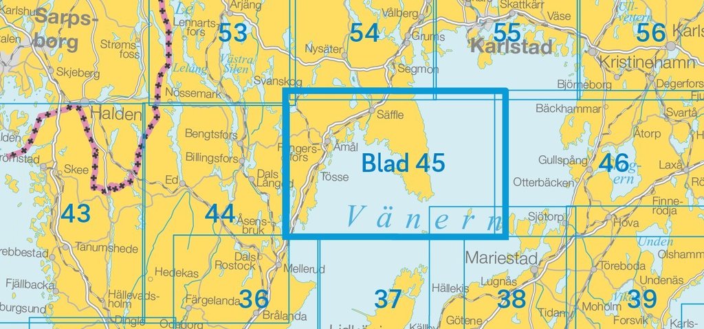 Kaarten en gidsen > Wandelen > Wandelkaarten > Europa > Scandinavië (& Noordpool) > Zweden > Zuid-Zweden > SE.T50.045 topografische wandelkaart Amal (Åmål)1:50.000