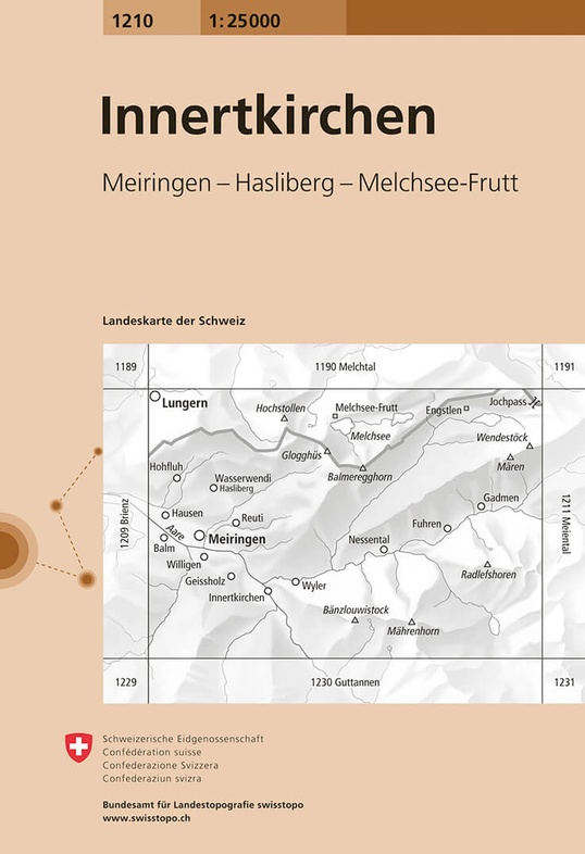 topografische wandelkaart CH-1210 Innertkirchen [2024]Topografische wandelkaarten van Zwitserland (Landeskarten der Schweiz), schaal 1:25.000. Kwalitatiefdirect leverbaar!€15,50 > alles van Europa -