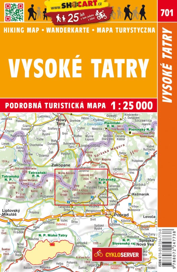 Kaarten en gidsen > Wandelen > Wandelkaarten > Europa > Centraal- en Oost-Europa, Balkan, Siberië > Tsjechië, Slowakije > Slowakije > SHO-701 Vysoké Tatry wandelkaart Hoge Tatra 1:25.000