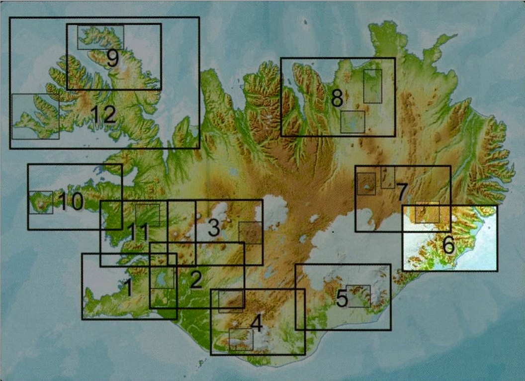 Nieuwe en bijzondere fraaie kaarten schaal 1:100 000 (met op de achterkant deelkaarten 1:50.000 van de mooiste wandelgebieden). Zeer nauwkeurige cartografie. Aanduidingen wandel- en autoroutes en andere nuttige informatie. Alle tekst is in het IJslands, Engels, Duits en Frans.
