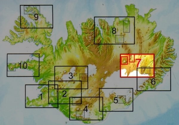 Nieuwe en bijzondere fraaie kaarten schaal 1:100 000 (met op de achterkant deelkaarten 1:50.000 van de mooiste wandelgebieden). Zeer nauwkeurige cartografie. Aanduidingen wandel- en autoroutes en andere nuttige informatie. Alle tekst is in het IJslands, Engels, Duits en Frans.