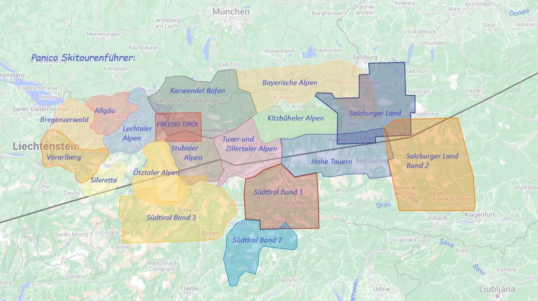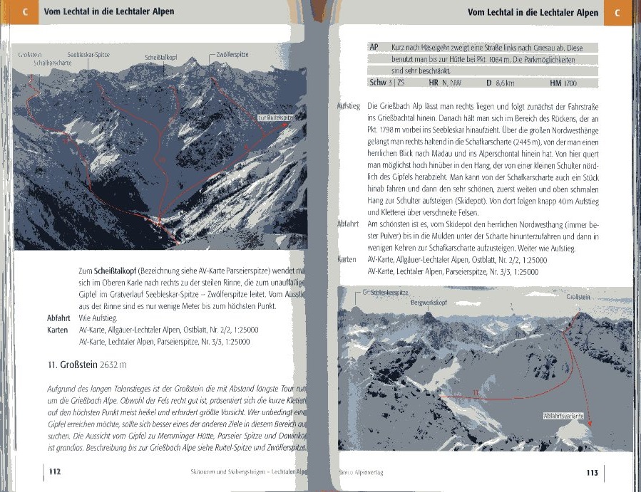 De toerskigidsen van Panico beschrijven van diverse gebieden alle mooie toerskitochten. De informatie is uitermate precies. Vrijwel alle beschreven routes zijn voorzien van een overzichtsfoto waarop de route is ingetekend, en een goede beschrijving van stijg/daalroute en de moeilijkheden die je kunt verwachten. De toerskigidsen van Panico beschrijven van diverse gebieden alle mooie toerskitochten. De informatie is uitermate precies. Vrijwel alle beschreven routes zijn voorzien van een overzichtsfoto waarop de route is ingetekend, en een goede beschrijving van stijg/daalroute en de moeilijkheden die je kunt verwachten. | Die Lechtaler Alpen sind flächenmäßig mit Abstand die größte Gruppe der Nördlichen Kalkalpen. Auch der einzige Dreitausender der Nördlichen Kalkalpen, die 3040 m hohe Parseierspitze, ist in den Lechtalern zu finden. Skitouren in dieser Gebirgsgruppe sind zum großen Teil recht anspruchsvoll, deshalb ist dieser Führer vor allem für selbständige und erfahrene Skitourengeher bzw. Skibergsteiger geeignet. Nur wenige Ziele eignen sich für Skitourenanfänger, bei einigen Touren ist also mehr der Alpinist als der reine Abfahrtsgenießer angesprochen. Der Führer versteht sich als Auswahlführer – nicht jede Rinne, die mal befahren wurde, ist der Erwähnung wert. Zudem sollen auch für die, die sich selbst mit der Karte Skitouren erschließen wollen, noch Freiräume bleiben. Etliche Touren haben einen langen „Zustieg“, was aber in den Karten deutlich zu erkennen ist. Wichtig zu wissen: Die Nordseite der Lechtaler Alpen gilt als besonders schneesicher. Auch wenn andernorts fast nichts mehr geht, findet man hier oft bis weit ins Frühjahr hinein beste Bedingungen vor. | De bijbehorende Alpenvereinskaarten bij de routes die in deze gids beschreven worden kunt u hier ook bestellen. Het gaat om de kaarten: BY-05 (Tannheimer Berge); BY-06 (Ammergebirge West); AV-2/1 (Allgäuer - Lechtaler Alpen - West); AV-02/2 (Allgäuer - Lechtaler Alpen - Ost); AV-03/2 (Lechtaler Alpen); AV-03/3 (Lechtaler Alpen - Parseierspitze); AV-03/4 (Lechtaler Alpen - Heiterwand und Muttekopfgebiet); AV-04/1 (Wetterstein- und Mieminger Gebirge).