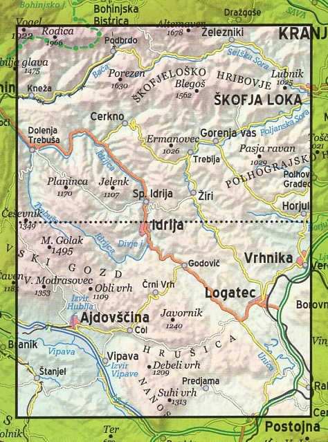 Kaarten en gidsen > Wandelen > Wandelkaarten > Europa > Centraal- en Oost-Europa, Balkan, Siberië > Westelijke Balkan > Slovenië > Skofjelosko / Idrijsko / Cerkljansko hribovje | wandelkaart 1:40.000