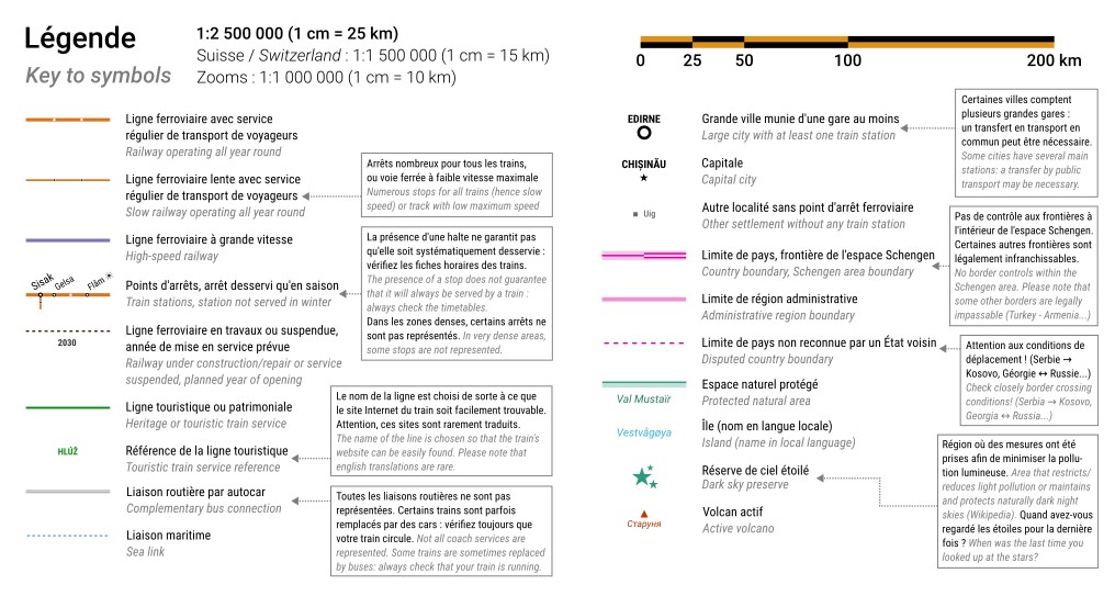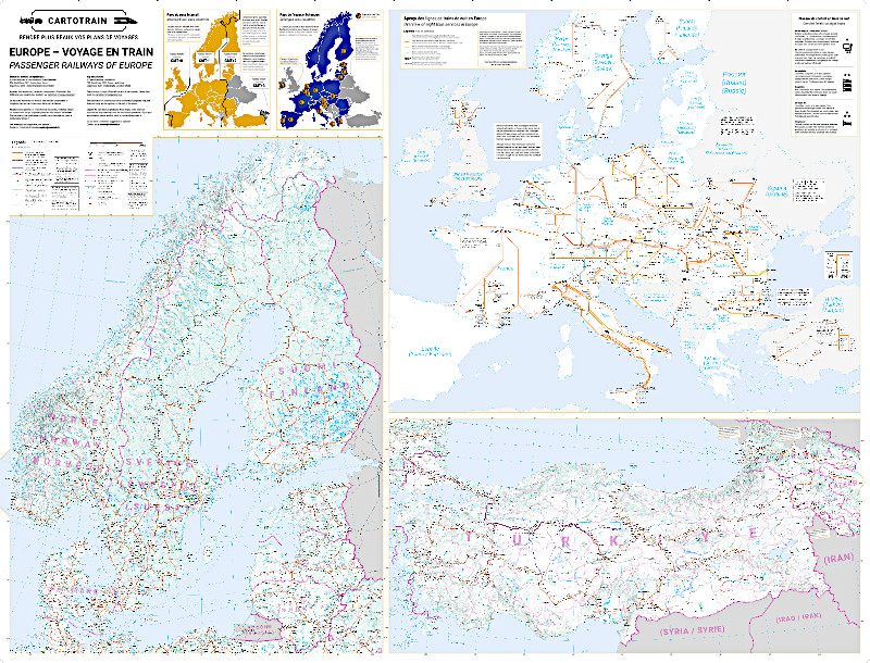 Ongeveer 12.000 stations in bijna 40 landen - geen enkele spoorwegkaart van Europa heeft ooit zo'n compleet overzicht gegeven van het netwerk. Grote verbindingen tussen metropolen of kleine spoorlijntjes door bossen en bergen... Er valt zoveel te ontdekken.