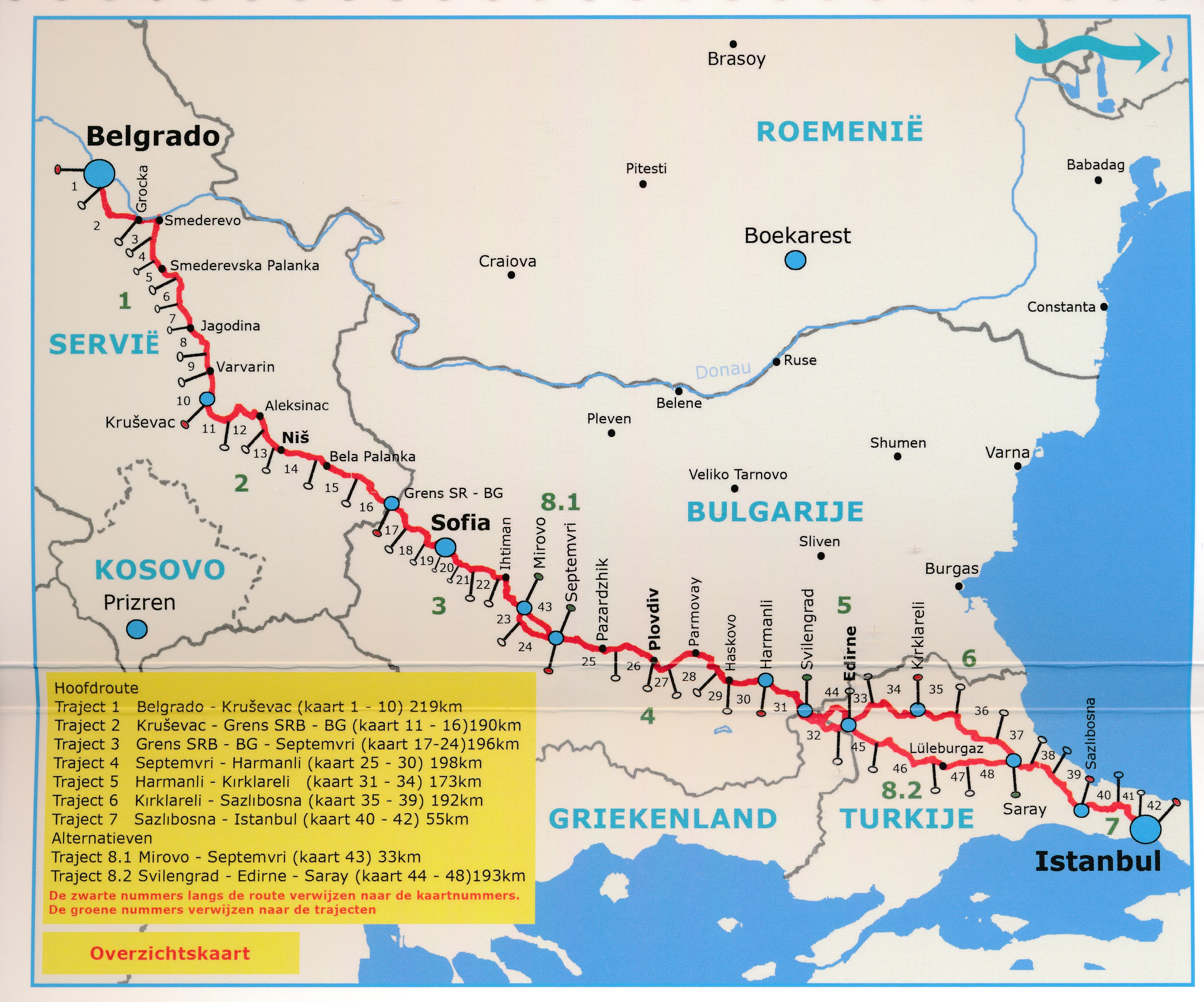 Het deel van Belgrado naar Istanbul beschrijft ca 1200 kilometer en is opgedeeld in zeven trajecten en twee alternatieve trajecten. We passeren de hoofdsteden Belgrado en Sofia maar ook de voormalige hoofdsteden Edirne en Istanbul. De stad Niš was de geboorteplaats van Constantijn de Grote die in 313 na Chr. het Christendom als het officiële geloof aannam. Plovdiv is de best bewaarde Osmaanse stad in de Balkan met een enorme schat aan Romeinse architectuur en kunst. Edirne was de speeltuin van de wereldberoemde architect Mimar Sinan, die als kers op de taart schittert met de meest prachtige Osmaanse architectuur.