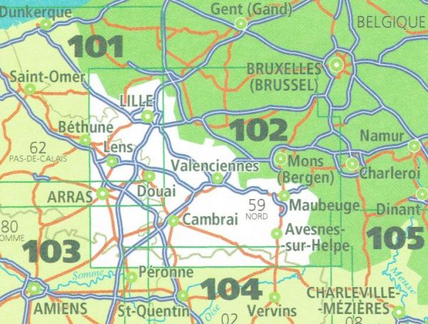 SV-102 Lille, Maubeuge | omgevingskaart / fietskaart 1:100.000