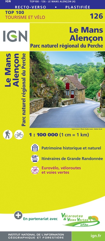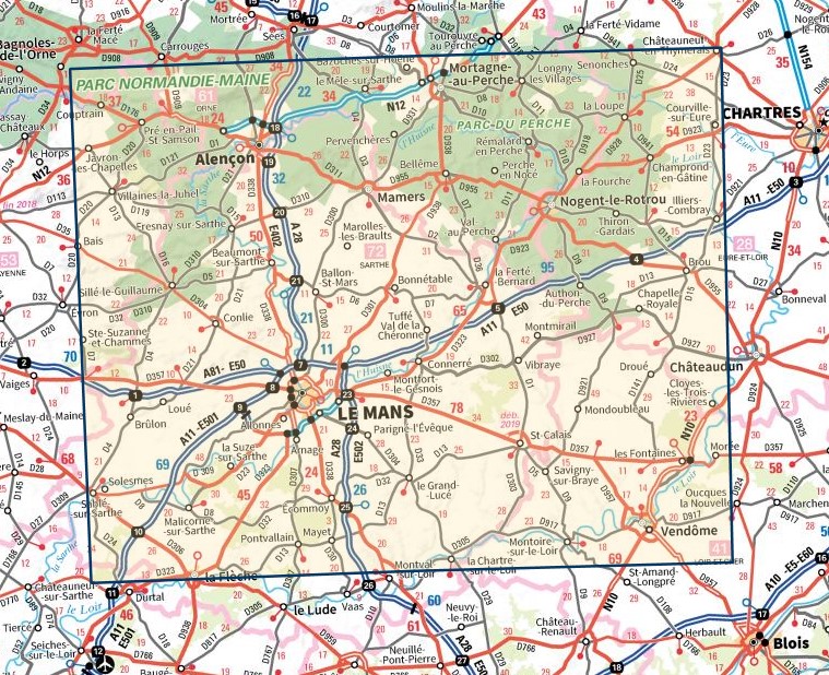 SV-126 Le Mans, Alençon | omgevingskaart / fietskaart 1:100.000