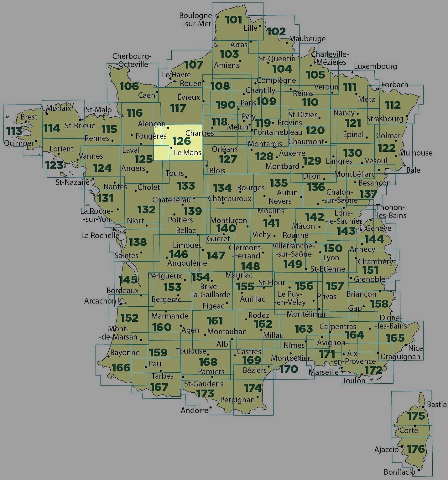 De ´Série Verte´ verdeelt Frankrijk in 76 mooie gedetailleerde kaarten op schaal 1:100.000. Deze schaal maakt het mogelijk veel details in het landschap te tonen, alle nederzettingen (tot en met de kleinste gehuchten), diverse vormen van grondgebruik, alle wegen tot en met de bredere onverharde paden. Deze kaarten stellen je dan ook in staat een goede indruk te krijgen van de omgeving. Als fietskaart zijn ze perfect. De voies vertes staan er ook op. Dit zijn oude spoorbanen en (jaag)paden langs kanalen en rivieren die omgetoverd zijn tot mooie vlakke en autovrije fietspaden. Je vindt ze overal in Frankrijk. Op dit moment heeft dat nog niet geleid tot één aaneensluitend netwerk van routes, maar her en der is toch al wel mogelijk om vele kilometers lang over een dergelijke traject te kunnen fietsen.