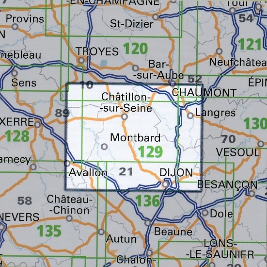 SV-129 Dijon, Montbard | omgevingskaart / fietskaart 1:100.000