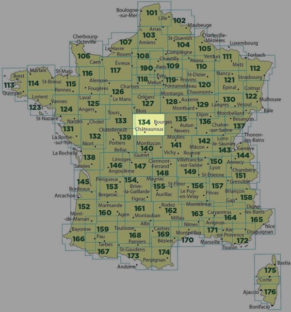 De ´Série Verte´ verdeelt Frankrijk in 76 mooie gedetailleerde kaarten op schaal 1:100.000. Deze schaal maakt het mogelijk veel details in het landschap te tonen, alle nederzettingen (tot en met de kleinste gehuchten), diverse vormen van grondgebruik, alle wegen tot en met de bredere onverharde paden. Deze kaarten stellen je dan ook in staat een goede indruk te krijgen van de omgeving. Als fietskaart zijn ze perfect. De voies vertes staan er ook op. Dit zijn oude spoorbanen en (jaag)paden langs kanalen en rivieren die omgetoverd zijn tot mooie vlakke en autovrije fietspaden. Je vindt ze overal in Frankrijk. Op dit moment heeft dat nog niet geleid tot één aaneensluitend netwerk van routes, maar her en der is toch al wel mogelijk om vele kilometers lang over een dergelijke traject te kunnen fietsen.