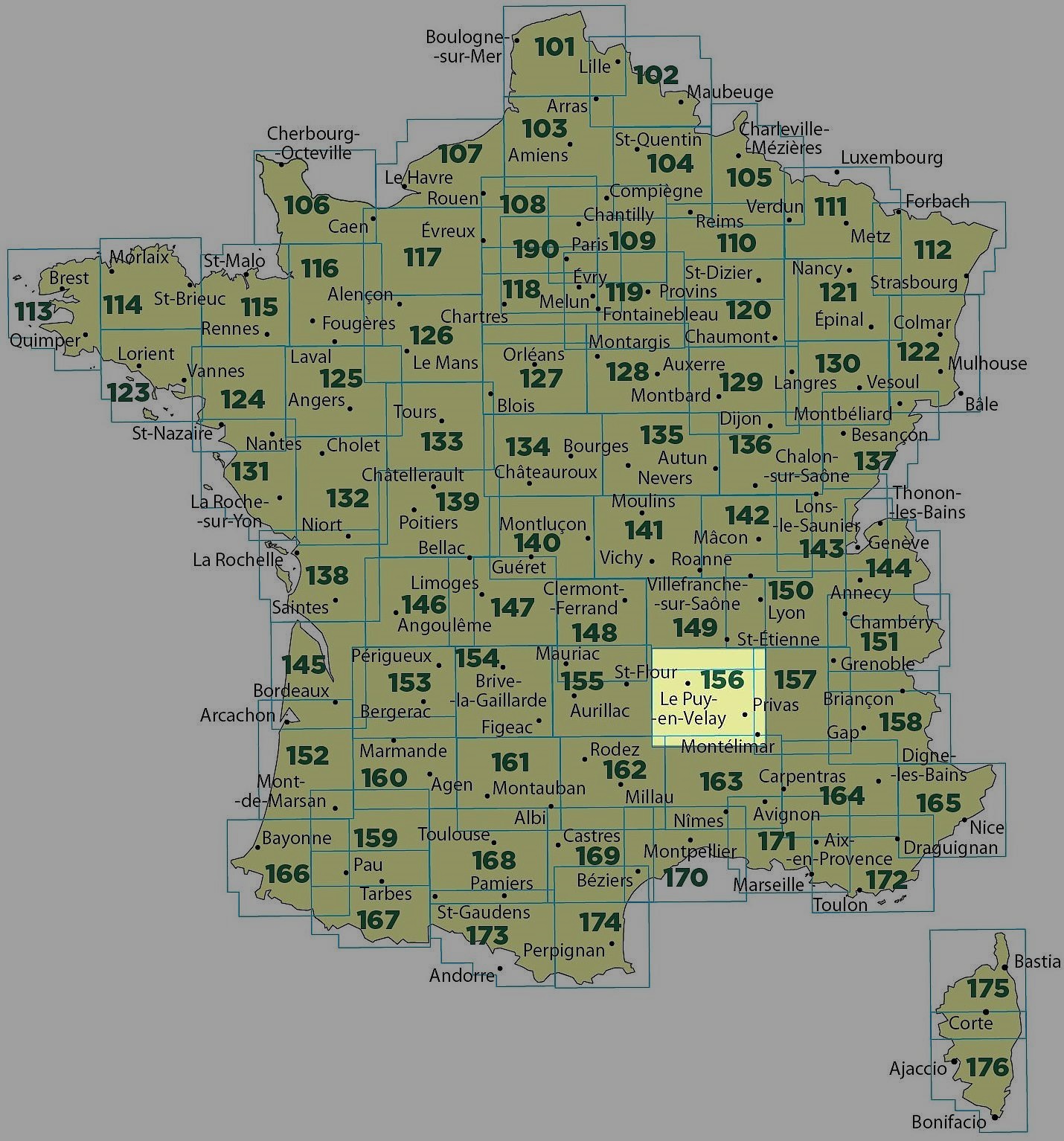 De ´Série Verte´ verdeelt Frankrijk in 76 mooie gedetailleerde kaarten op schaal 1:100.000. Deze schaal maakt het mogelijk veel details in het landschap te tonen, alle nederzettingen (tot en met de kleinste gehuchten), diverse vormen van grondgebruik, alle wegen tot en met de bredere onverharde paden. Deze kaarten stellen je dan ook in staat een goede indruk te krijgen van de omgeving. Als fietskaart zijn ze perfect. De voies vertes staan er ook op. Dit zijn oude spoorbanen en (jaag)paden langs kanalen en rivieren die omgetoverd zijn tot mooie vlakke en autovrije fietspaden. Je vindt ze overal in Frankrijk. Op dit moment heeft dat nog niet geleid tot één aaneensluitend netwerk van routes, maar her en der is toch al wel mogelijk om vele kilometers lang over een dergelijke traject te kunnen fietsen.