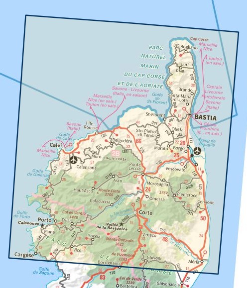 SV-175 Bastia/Corte (Corse Nord) | omgevingskaart / fietskaart 1:100.000