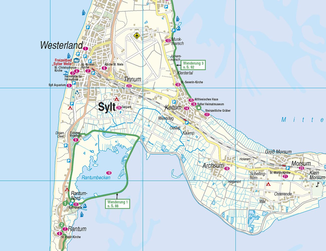 - Inselfaltplan zum Herausnehmen und detaillierte Ortspläne