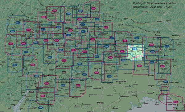Een serie gedetailleerde, goed leesbare wandelkaarten over Zuid-Tirol / Dolomieten (Trento - Alto Adige) met o.a. ingetekende wandelroutes, hoogtelijnen per 20 meter, globale technische zwaarteaanduiding, onderkomens (berghutten) , bushaltes, liften, autowegennet. Met UTM kilometerraster. TIP: KLIK OP DE UITGEVERSNAAM, DAN ZIET U ALLE KAARTEN OP VOLGORDE!