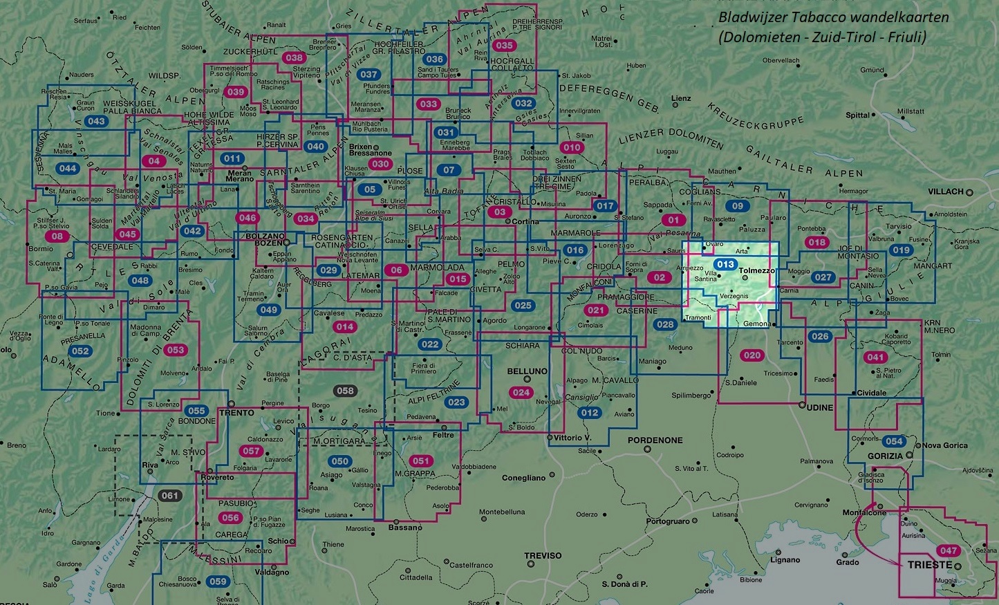 Kaarten en gidsen > Wandelen > Wandelkaarten > Europa > Zuid-Europa / Middellandse Zee > Italië > Noord-Italië > Veneto, Friuli > TAB-013 Prealpi Carniche - Val Tagliamento | Tabacco wandelkaart