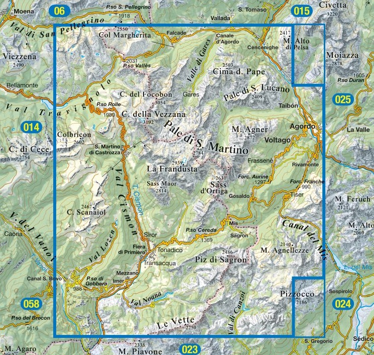 TAB-022 Pale di San Martino | Tabacco wandelkaart