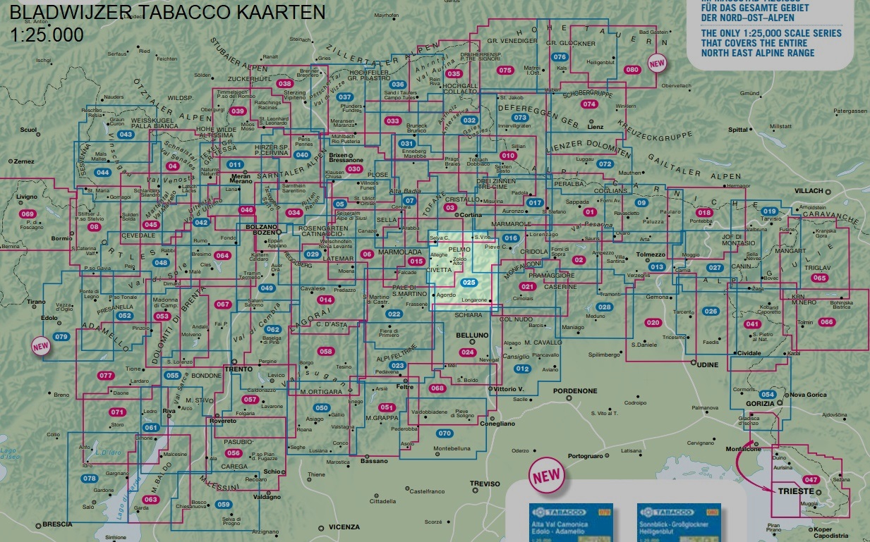 Een serie gedetailleerde, goed leesbare wandelkaarten over Zuid-Tirol / Dolomieten (Trento - Alto Adige) met o.a. ingetekende wandelroutes, hoogtelijnen per 20 meter, globale technische zwaarteaanduiding, onderkomens (berghutten) , bushaltes, liften, autowegennet. Met UTM kilometerraster. TIP: KLIK OP DE UITGEVERSNAAM, DAN ZIET U ALLE KAARTEN OP VOLGORDE!