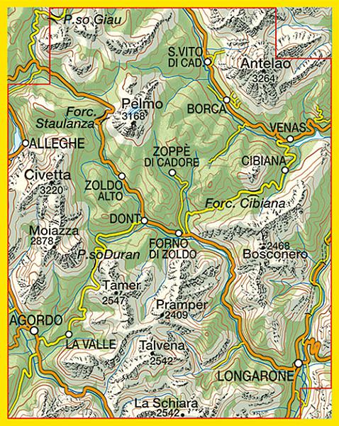 TAB-025 Dolomiti di Zoldo - S.Vito di Cadore | Tabacco wandelkaart