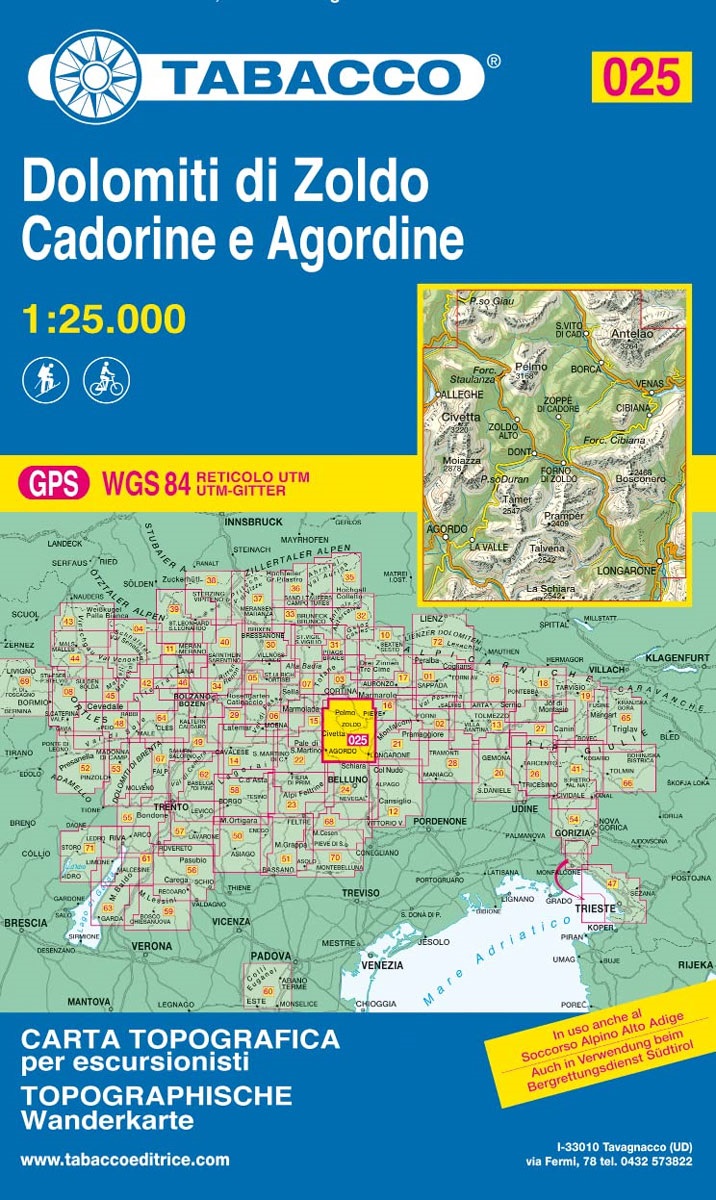 Kaarten en gidsen > Wandelen > Wandelkaarten > Europa > Zuid-Europa / Middellandse Zee > Italië > Noord-Italië > Zuid-Tirol, Dolomieten > TAB-025 Dolomiti di Zoldo - S.Vito di Cadore | Tabacco wandelkaart