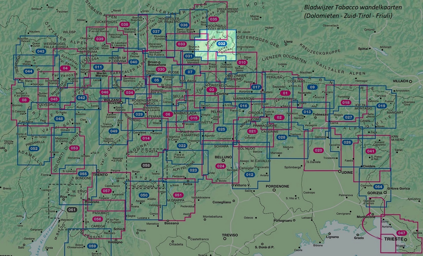 Een serie gedetailleerde, goed leesbare wandelkaarten over Zuid-Tirol / Dolomieten (Trento - Alto Adige) met o.a. ingetekende wandelroutes, hoogtelijnen per 20 meter, globale technische zwaarteaanduiding, onderkomens (berghutten) , bushaltes, liften, autowegennet. Met UTM kilometerraster. TIP: KLIK OP DE UITGEVERSNAAM, DAN ZIET U ALLE KAARTEN OP VOLGORDE!