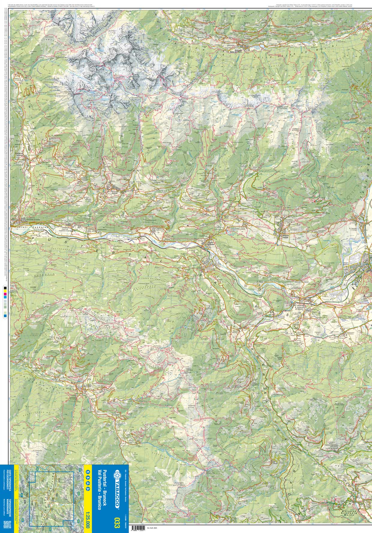 Kaarten en gidsen > Wandelen > Wandelkaarten > Europa > Zuid-Europa / Middellandse Zee > Italië > Noord-Italië > Zuid-Tirol, Dolomieten > TAB-033 Brunico/Bruneck Pustertal | Tabacco wandelkaart