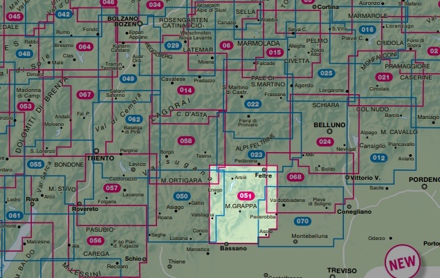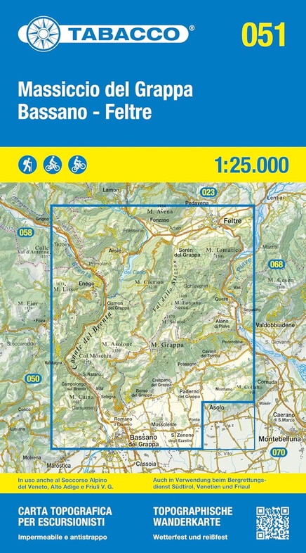 Kaarten en gidsen > Wandelen > Wandelkaarten > Europa > Zuid-Europa / Middellandse Zee > Italië > Noord-Italië > Zuid-Tirol, Dolomieten > TAB-051 Monte Grappa | Tabacco wandelkaart