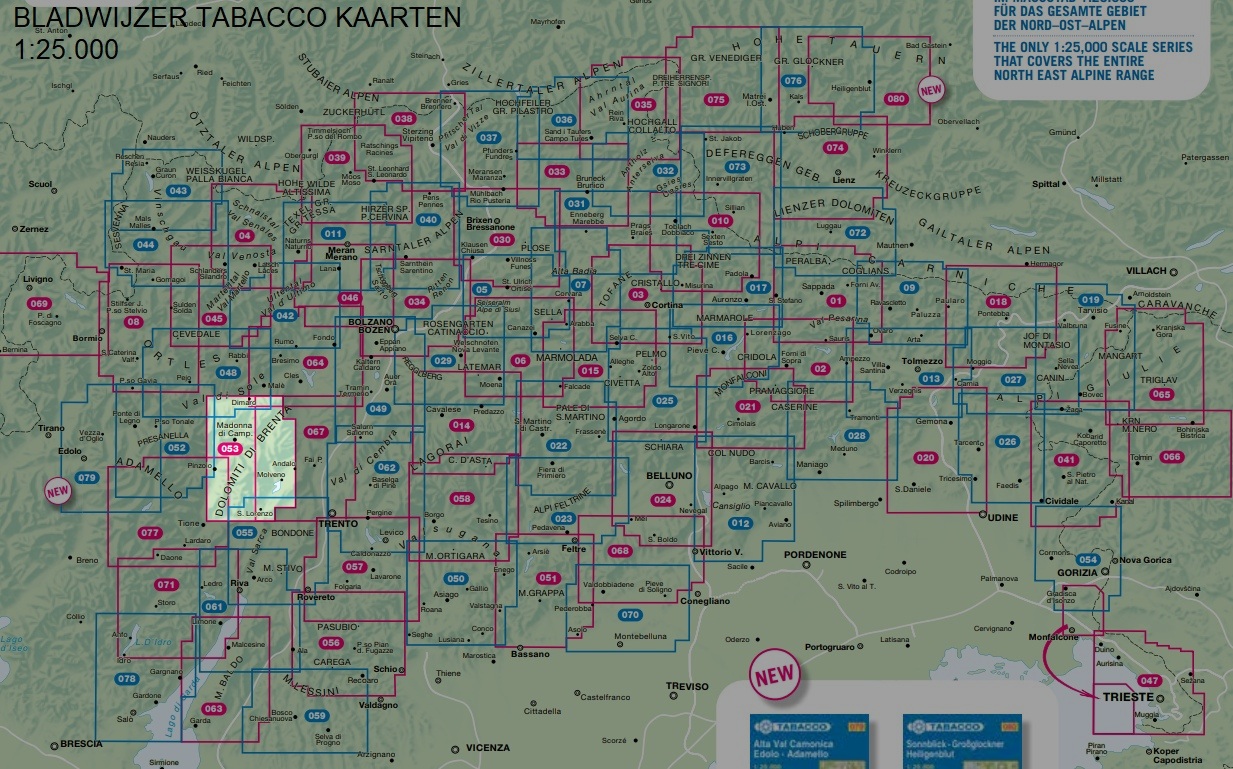 Een serie gedetailleerde, goed leesbare wandelkaarten over Zuid-Tirol / Dolomieten (Trento - Alto Adige) met o.a. ingetekende wandelroutes, hoogtelijnen per 20 meter, globale technische zwaarteaanduiding, onderkomens (berghutten) , bushaltes, liften, autowegennet. Met UTM kilometerraster. TIP: KLIK OP DE UITGEVERSNAAM, DAN ZIET U ALLE KAARTEN OP VOLGORDE!