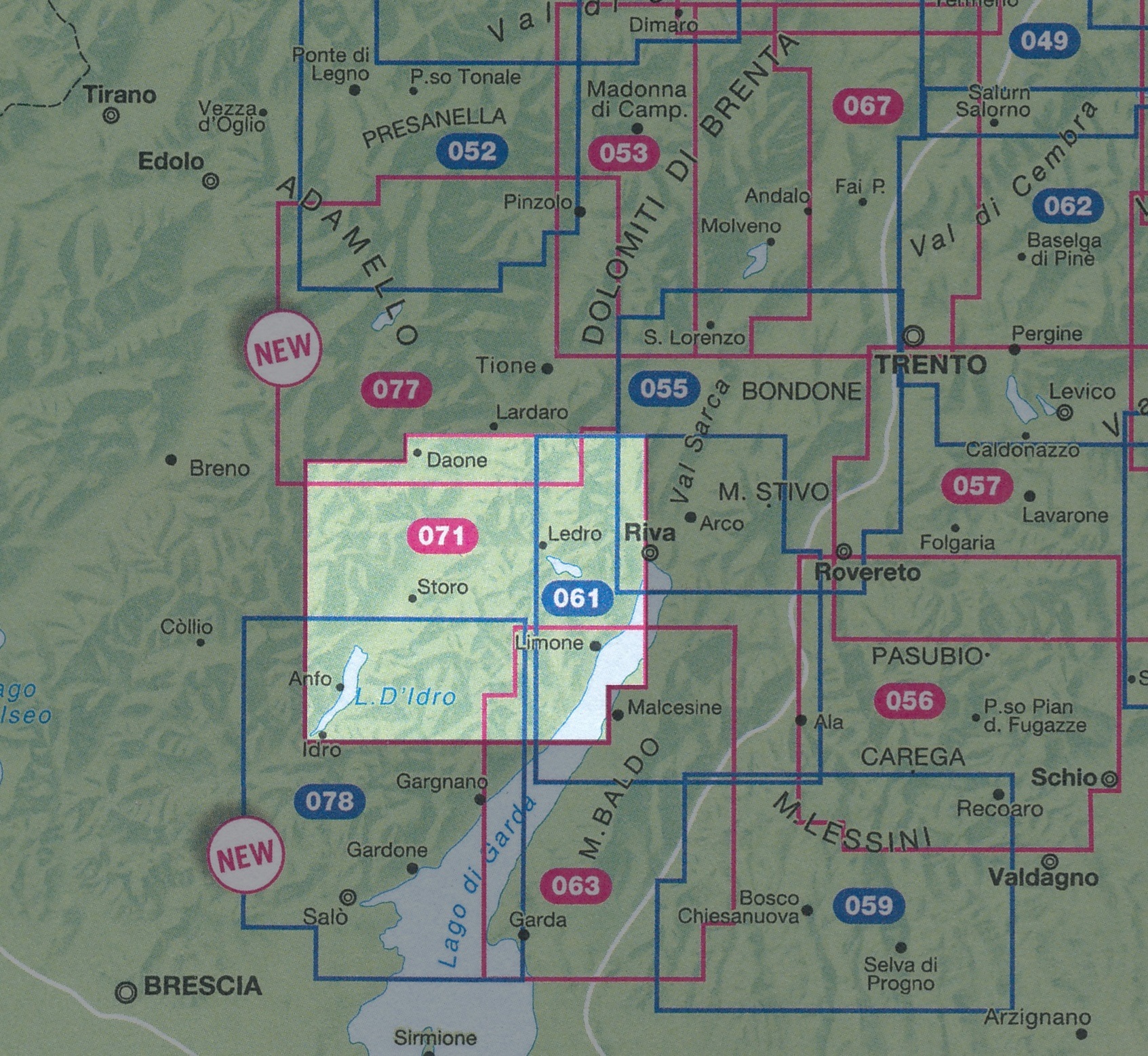 Kaarten en gidsen > Wandelen > Wandelkaarten > Europa > Zuid-Europa / Middellandse Zee > Italië > Noord-Italië > Gardameer > TAB-071 Prealpi Gardesane, Valle di Ledro | Tabacco wandelkaart