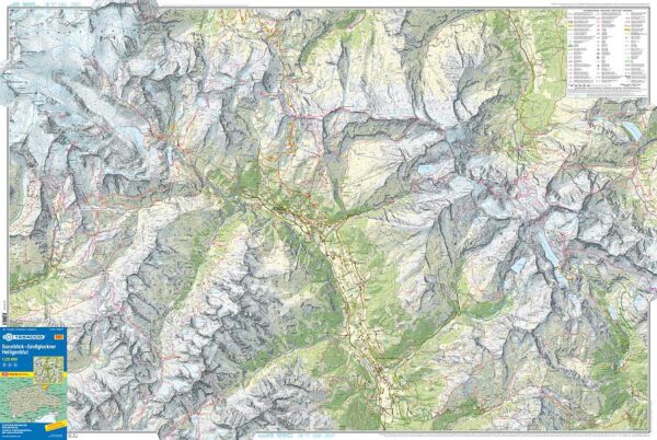 Een serie gedetailleerde, goed leesbare wandelkaarten, met o.a. ingetekende wandelroutes, hoogtelijnen per 20 meter, globale technische zwaarteaanduiding, onderkomens (berghutten) , bushaltes, liften, autowegennet. Met UTM kilometerraster. Op de kaart: Hochtor, Schareck, Hocharn, Hoher Sonnblick, Böses Weibl, Gradental, Mölltal, Grosskirchheim, Schobergruppe, Ködnitztal, Gössnitztal, Hüttwinkltal, Edelweissspitze, Franz-Josef haus, Astental, Zirknitztal, Wurtental, Petzeck.