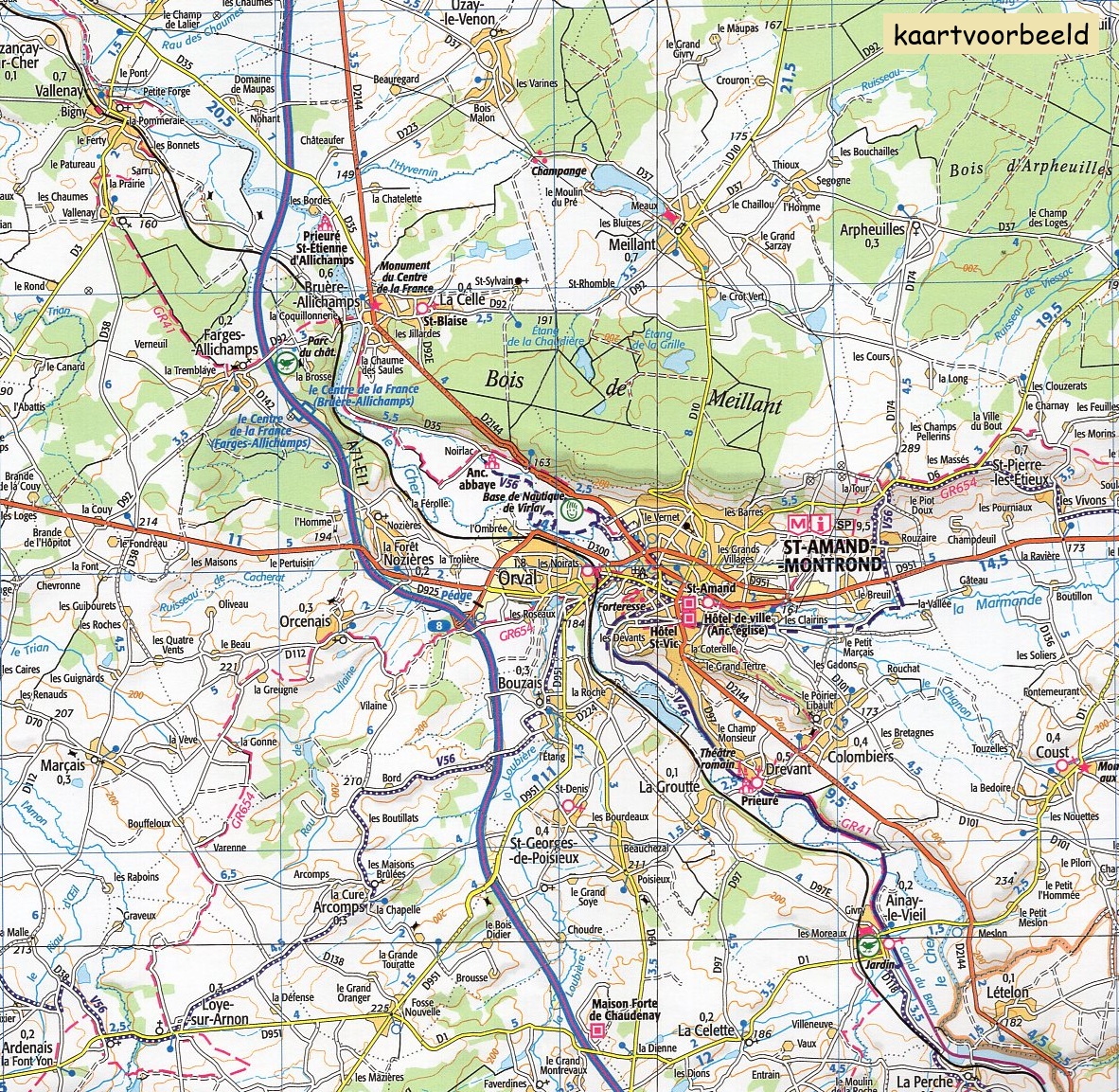 De serie Departementskaarten van het IGN zijn mooie gedetailleerde kaarten op schaal 1:100.000, ingedeeld per departement. Deze schaal maakt het mogelijk veel details in het landschap te tonen, alle nederzettingen (tot en met de kleinste gehuchten), diverse vormen van grondgebruik, alle wegen tot en met de bredere onverharde paden. Deze kaarten stellen je dan ook in staat een goede indruk te krijgen van de omgeving. Als fietskaart zijn ze perfect. De voies vertes staan er ook op. Dit zijn oude spoorbanen en (jaag)paden langs kanalen en rivieren die omgetoverd zijn tot mooie vlakke en autovrije fietspaden. Je vindt ze overal in Frankrijk. Op dit moment heeft dat nog niet geleid tot één aaneensluitend netwerk van routes, maar her en der is toch al wel mogelijk om vele kilometers lang over een dergelijke traject te kunnen fietsen.