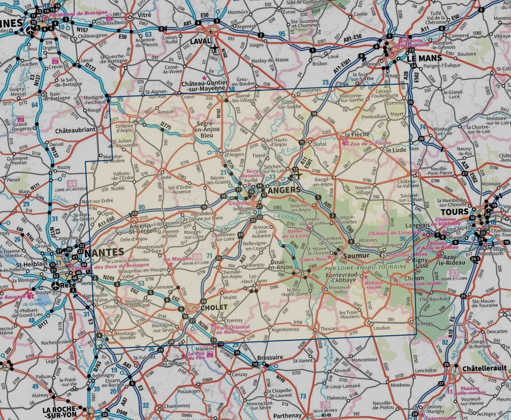 Angers, Saumur, Cholet, Vallée et Châteaux de la Loire, PNR Loire-Anjou-Touraine