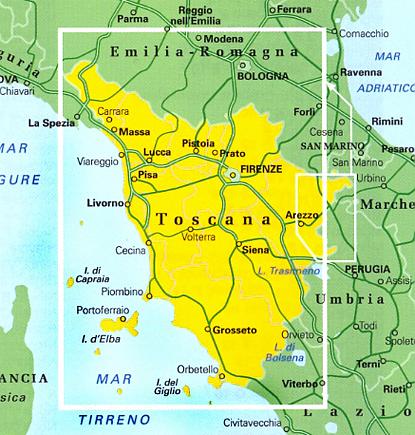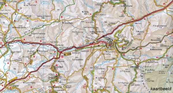 Gedetailleerde wegen-/ overzichtskaart. Onder andere geschikt als fietskaart. Hellingspercentages d.m.v. pijltjes aangegeven. Geen campings.