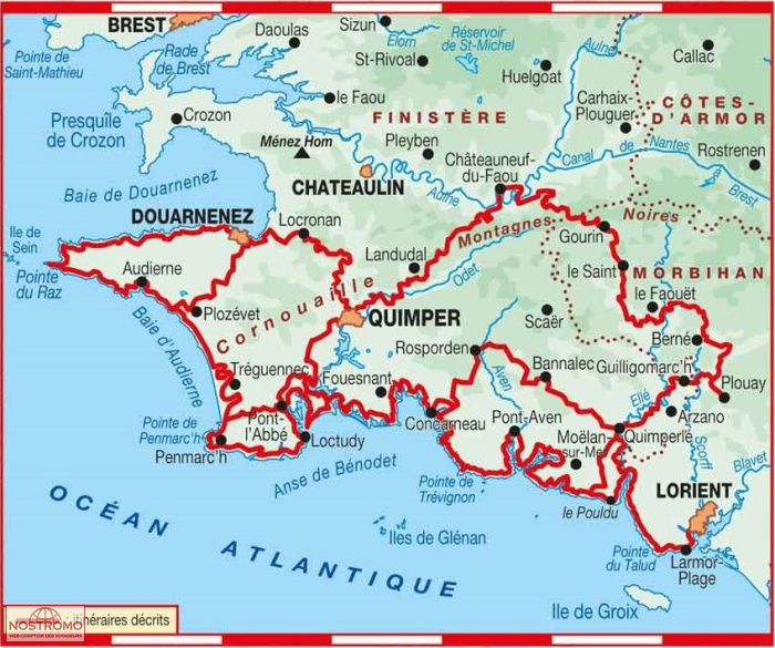 | Gebied | Finistère Sud; wandelgids GR34, GR38, tot. 530km |