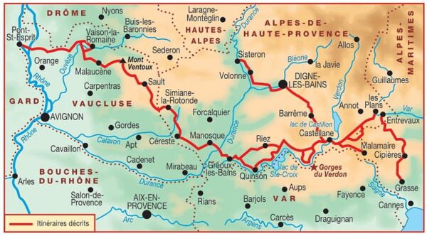 GR 4: Grasse, Pont Saint Esprit, via de Var, de Gorges du Verdon, Luberon. Variant naar Sisteron, via Digne.